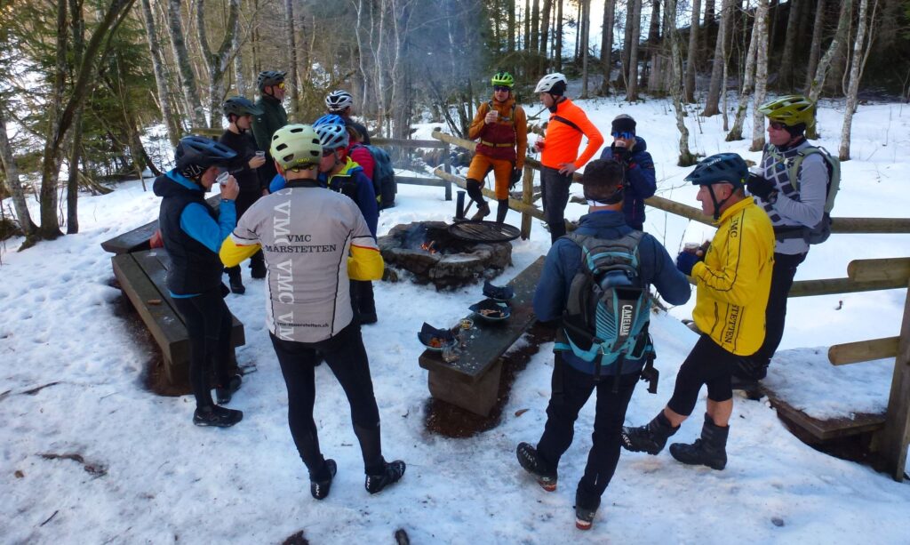 Unterwegs erwartet uns ein „Outdoor-Apero“ am Feuer mit heissem Früchte-Tee, feinen Dörrfrüchten, Süssigkeiten und Gebäck. Wir stärken uns für den zweiten Teil der Tour.