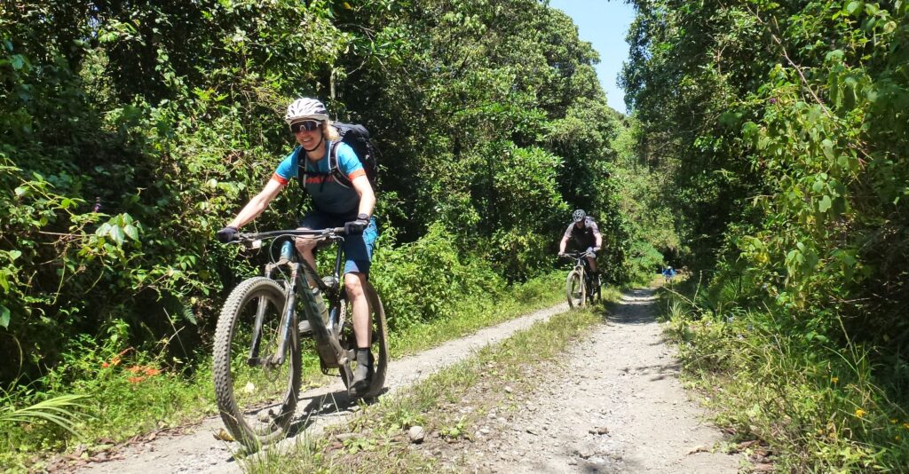 Was nun folgt dürfte mit 4500 Tiefenmeter eine der längsten Abfahrten der Welt sein. Von den Gletschern sliden wir durch vegetationslose Geröllfelder hinunter ins spärliche Grasland. Weiter durch buschiges Bergland mitten hinein in den Dschungel und schlussendlich durch die Bananen-Plantagen dem Tal entgegen. Bis auf ca 150 Tiefenmeter ist die Abfahrt für versierte Biker und bei guter Akklimatisation komplett fahrbar.