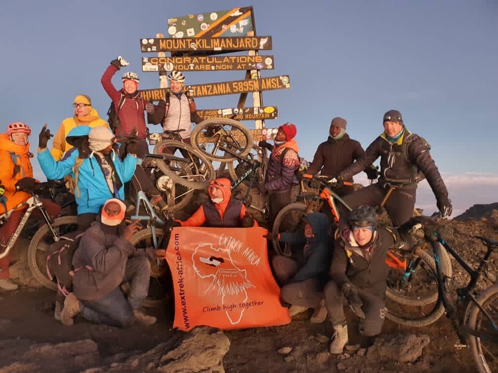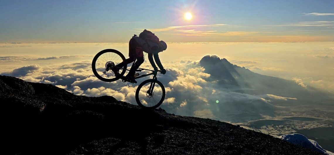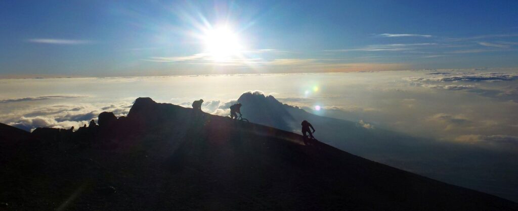 Kilimanjaro, der höchste freistehende Berg der Welt, der höchste Berg Afrikas und somit einer der Seven Summits. Die Dimensionen: 80 km lang, 60 km breit und 5895 Meter hoch. Die kaum fassbaren Ausmasse, das Erlebnis, die Bilder, die Aussicht, das Befahren aller Klimazonen, der Höhenunterschied, die Menschen und das Leben vor Ort machen das Ganze zu einer Biketour die absolut einzigartig ist. Dank einem ausgeklügelten Akklimatisations-Management, schafften wir es alle zusammen mit dem Bike bis auf den höchsten Punkt – den Uhuru Peak.
