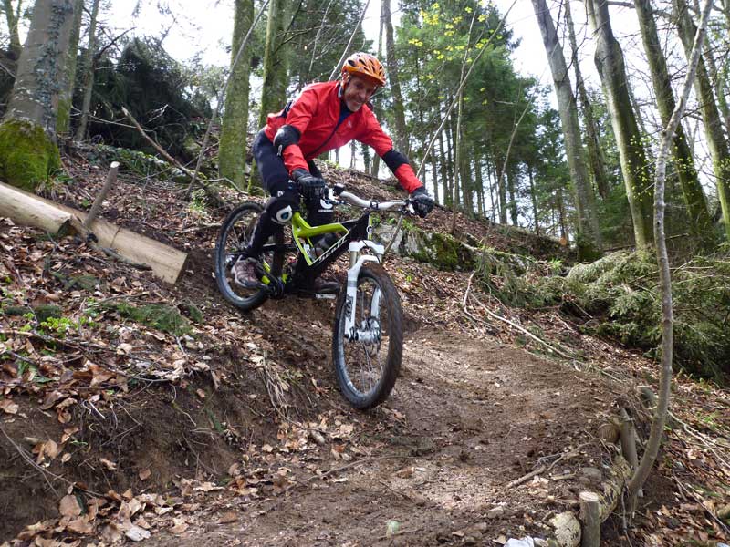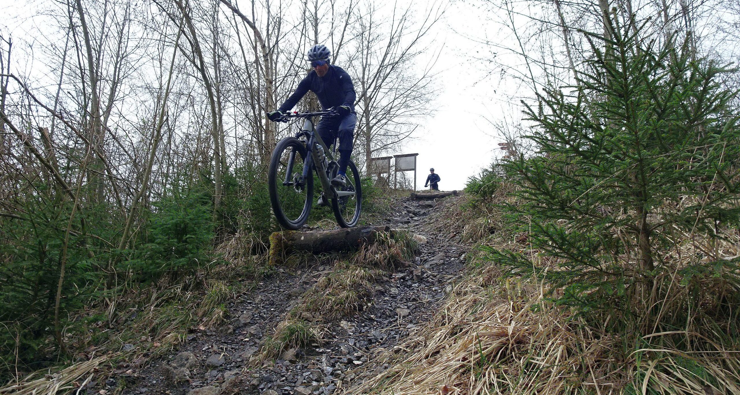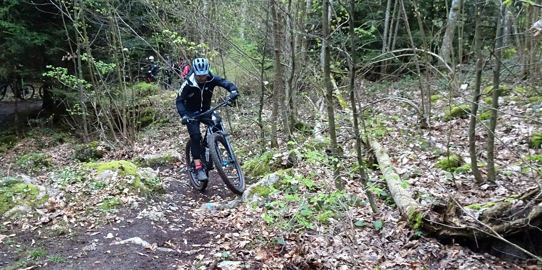 Du bist bereits auf S2-Trails unterwegs. Auf diesen Wegen musst du bereits mit grösseren Wurzeln und Steinen rechnen. Der Boden ist häufig nicht verfestigt. Stufen und flache Treppen sind zu erwarten. Oftmals kommen enge Kurven vor, die Steilheit beträgt passagenweise bis zu 70%. Die Hindernisse müssen durch Gewichtsverlagerung überwunden werden. Ständige Bremsbereitschaft und das Verlagern des Körperschwerpunktes sind notwendige Techniken, ebenso genaues dosieren der Bremsen und ständige Körperspannung.
