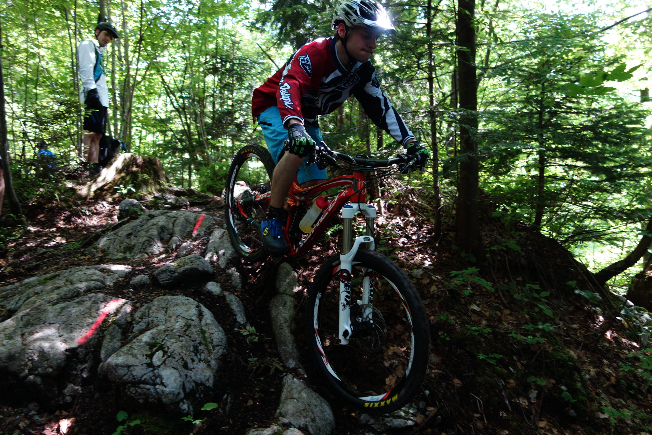 Du willst in Zukunft sicher auf S3-Trails unterwegs sein. Verblockte Singletrails mit vielen grösseren Felsbrocken und/ oder Wurzelpassagen gehören zu dieser Kategorie. Hohe Stufen, Spitzkehren und kniffelige Schrägfahrten kommen oft vor, entspannte Rollabschnitte werden selten. Häufig ist auch mit rutschigem Untergrund und losem Geröll zu rechnen, Steilheiten über 70% sind keine Seltenheit.