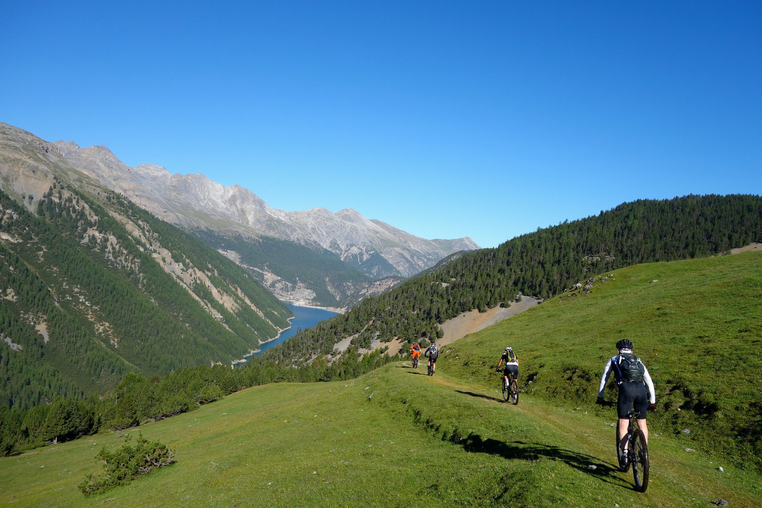 Atemberaubend schöne Hochtäler, tiefblaue Seen und beeindruckende Felslandschaften. Auf hochgelegenen Trails fahren wir durchs Herzen des Alta Rezia und erleben eine Alpenregion, die uns tief in ihren Bann zieht.