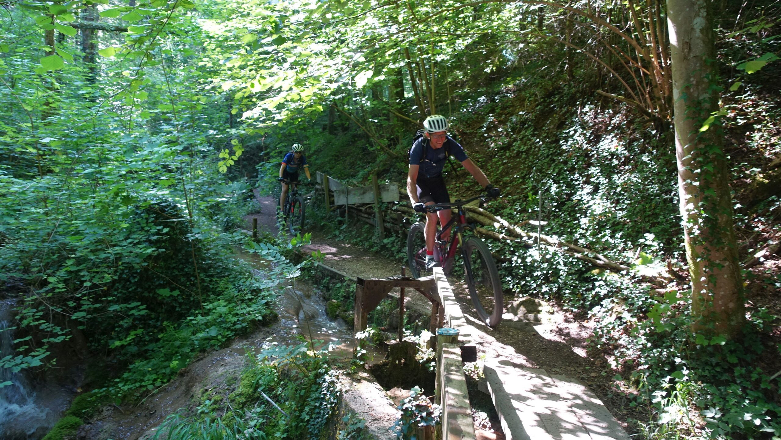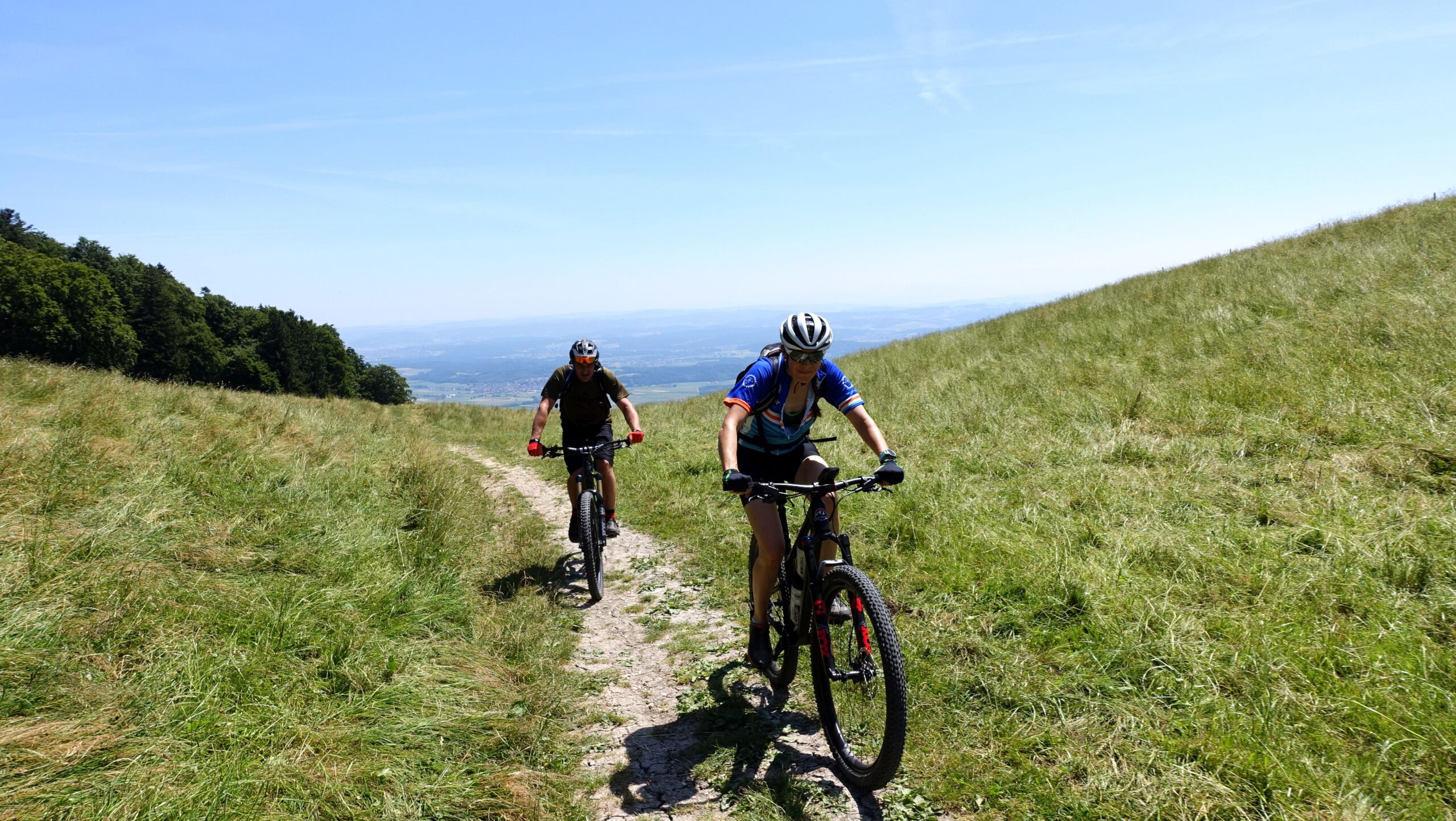 Auch der Jura kann einen gestandenen Biker mächtig fordern. Obschon die Berge weniger hoch sind als die Alpen und die Aufstiege auch nicht zu den längsten zählen, so dürfen die beiden Touren in der Gruppe A keinesfalls auf die leichte Schulter genommen werden. Asphalt gibt es wenig und wo immer möglich fahren wir auf Trails – natürlich auch berghoch.