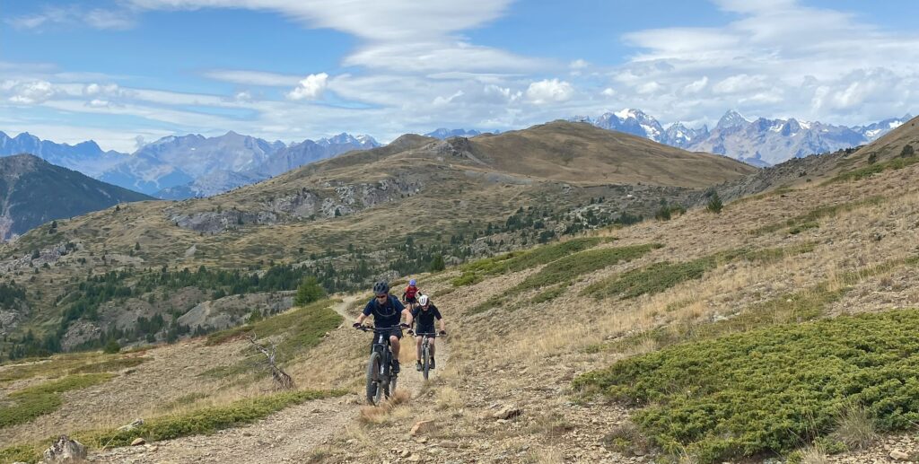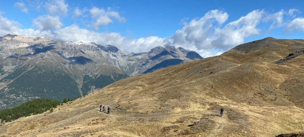 Im Schnittpunkt zwischen dem Valle Susa und dem okzitanischen Valle Chisone erwarten uns unzählige Trails. Am Ende der Woche gewährt und diese Tour noch mal einen Blick zu sämtlichen Pässen, Gipfeln und Tälern in welchen wir im Bikecamp Valle Susa unterwegs waren. Auf Militärwegen aus verschiedenen Epochen geht es noch mal hoch auf über 2500 Meter. Bald folgen unendlich lange Höhentrails mit faszinierenden Aussichten. Stundenlanges «Trailen» wie es schöner nicht sein kann. Ich liebe das Piemont – es ist zu meiner zweiten Heimat geworden!