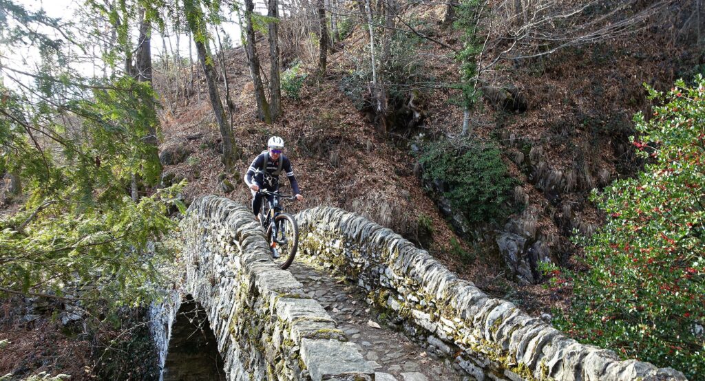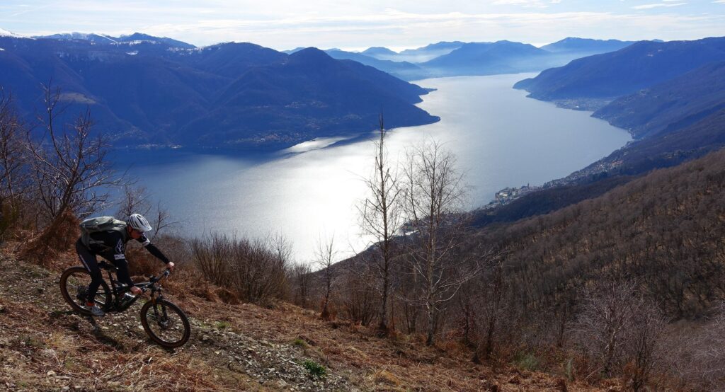 Auf geschichtsträchtigen Pfaden biken wir durch alte Kastanien- und Birkenwälder und durch aussichtsreiche Bergflanken. Immer wieder geniessen wir dabei unglaubliche Ausblicke zum tief unter uns gelegenen See und erleben die Lepontinischen Alpen mit voller Wucht und in ihrer beeindruckenden Einzigartigkeit.