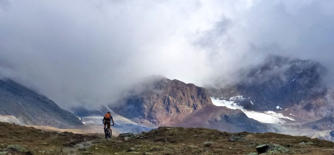 Der heutige Morgen beginnt mit einem Downhill-Feuerwerk. Er stimmt uns ein in einen Tag der weitere Massstäbe setzen wird. Im langen Haupt-Uphill fahren wir immer weiter hinein in eine wild-urtümliche Hochgebirgslandschaft. Ein weiteres Mal sind Fels und Gletschereis zum Greifen nah. Die Berge um uns herum ragen fast senkrecht in den Himmel. Und so steigen auch unsere Trails mächtig an. Die 3000-Meter Marke ist geknackt. Diese Täler sind einzigartig schön, unendlich lang und führen uns in einige der entlegensten Regionen der Ostalpen. Nur Dank dem Militär sind diese für uns mit dem Bike erreich- und erlebbar. Unendlich lange führt eine weitere Abfahrt durch mehrere Vegetationsstufen dem Tal entgegen. Unsere Eindrücke müssen wir erst mal sortieren. Kaum fassbar was wir gerade erlebt haben…